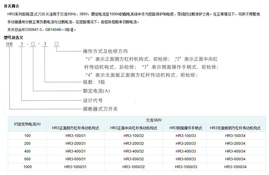 HR3-1000/34熔断器式刀开关 隔离刀闸熔断式隔离开关