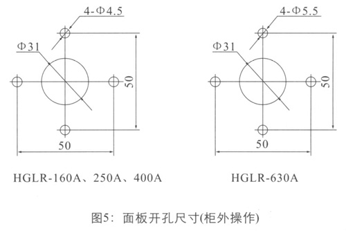 面板开孔尺寸(见图5) ![]() 使用安装说明 1、开关应水平安装,安装前应使开关处于断开位置。 2、开关应配用NT型熔断器.其性能应符合GBl3539.1和GB13539.2的要求,且所配熔断器应具有相应的额定电流和短路分断能力。当开关用于电动机电路时,允许熔断器额定电流大于开关的约定发热电流。 3、安装尺寸中“L”为开关出厂时正常给定的安装深度,指安装板(脚)至面板表面的距离;使用安装时请根据开关到柜门面板的距离.在安装深度L值的范围内调整方轴的深度(若距离较小,低于L值中最小值,可将方轴锯掉一部份),调定后锁紧固定螺栓。若用户要求“L”以外的安装深度时,请在订货时说明。 4、根据开关的外形与安装尺寸确定手柄的安装中心位置,并按面板开孔尺寸(见图5)在柜门面板上开孔,然后将手柄固定在柜门面板上。 5、顺时钟旋转操作手柄,可使开关闭合;逆时针旋转操作手柄,可使开关断开。每次操作前,应注意开关的指示状态;在分断位置0时,开关只能顺时钟操作使其闭合;在闭合位置I时,开关只能逆时钟操作使其断开。 用户须知 1、HGLR系列开关必须与熔断器配套使用,熔断器可由用户自备.但请选用较好的熔断器,以防温升偏高。 2、我公司所提供的开关价格是不含熔断器的.若用户在订货时提出.我公司可配套提供熔断器.但一般不装在开关本体上。 3、用户订货时请注明开关型号规格、开关极数及熔断体额定电流等。 |