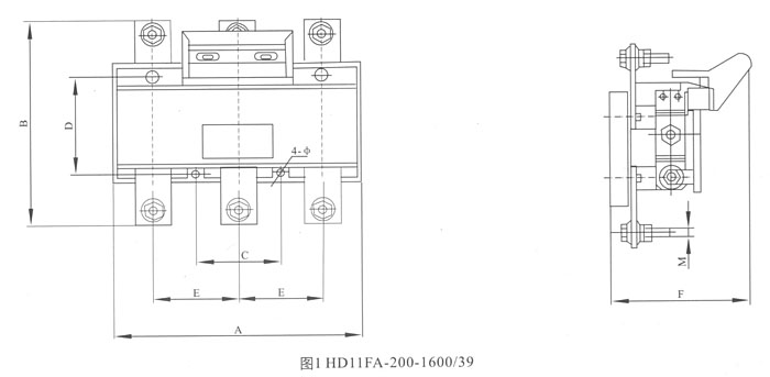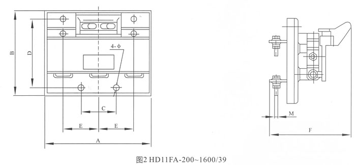 外形与安装尺寸 5.1HD11FA-200-1600A板前接线外形与安装尺寸 ![]()